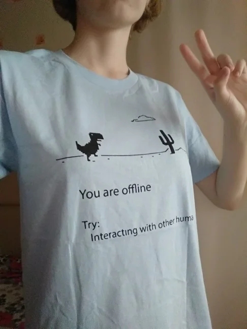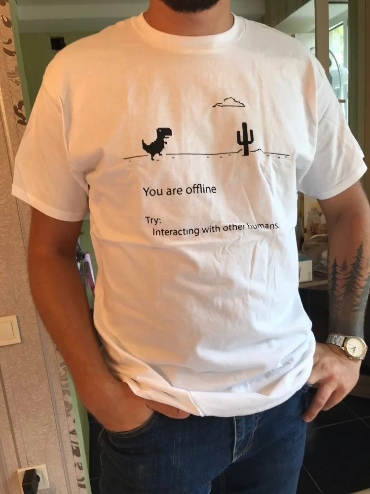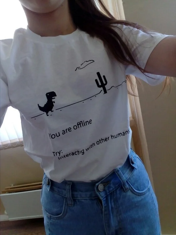 Cotton Men Dino Tshirt Male Summer Loose Funny T-shirt Tee Shirt Men You Are Off Line Try Interact