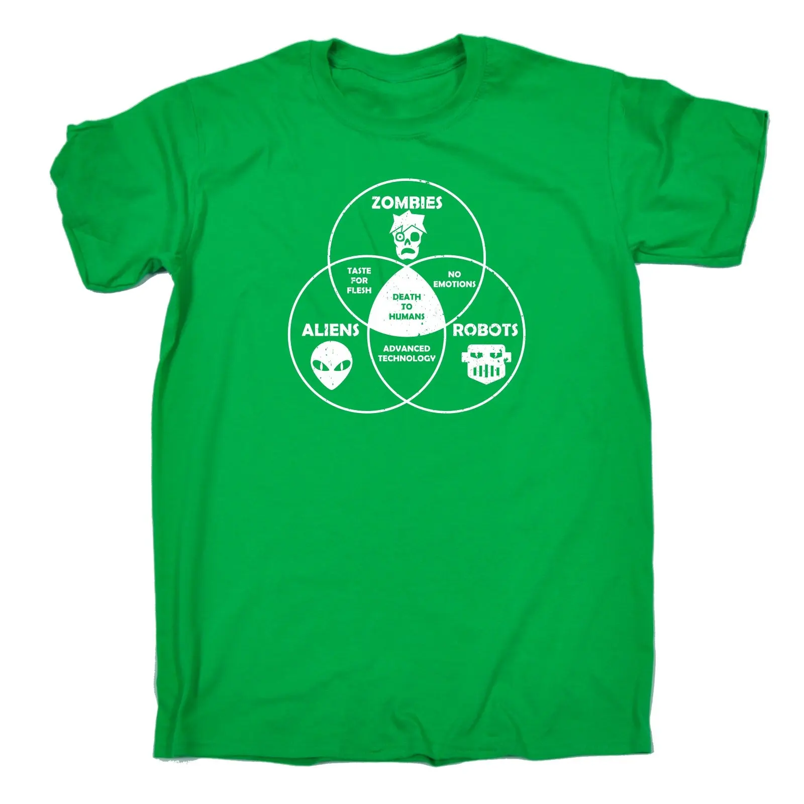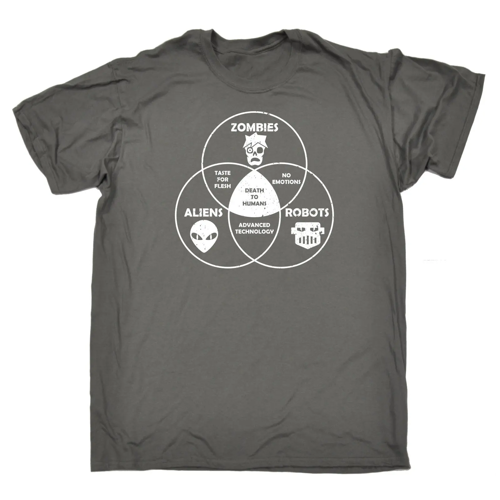 T Shirt Short Sleeve Zombie Aliens Robots Death To Humans T-SHIRT Horror Comedy Sci Fi Birthday O-N